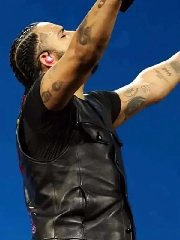A notable characteristic of the Drake Wireless Festival Black Vest is its understated power lacking glittering embellishments, it focuses on subtle details and a well-defined shape. The two exterior pockets are elegantly positioned to maintain visual balance while also serving as a practical option for carrying essentials. Regardless of the leather choice, it retains its shape and properties, not to mention its substantial weight, and the exquisite structure of the garment does not detract from the fact that a simple primary layer is still utilized. The worn rock star aesthetic is more than just a flashy appearance; it serves as a versatile wardrobe foundation, making it an ideal choice for a night out, unpredictable weather, or as part of a dynamic ensemble. The contemporary vernacular of the style and the precision of the fit ensure it remains a long-lasting piece that infuses relevant fashion.