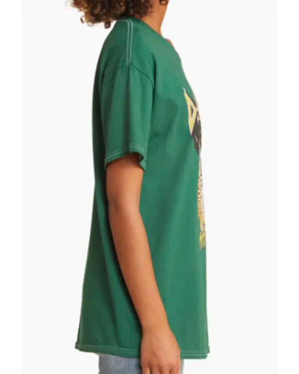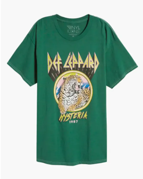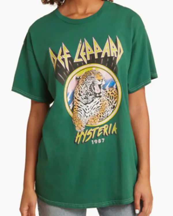 The soft cotton used to make this women’s green t-shirt feels light and breathable against the skin. It has a traditional crew neck for a tidy and comfortable fit. It is perfect for warm weather and daily wear because of the half sleeves. Because it is a pullover t-shirt, it is simple to put on and take off. The bold pattern and green hue give the entire ensemble a playful, contemporary feel. Kaitlin Olson Def Leppard T-Shirt looks great with casual skirts, jeans, or shorts. It is ideal for laid-back weekends, informal get-togethers, and everyday excursions. The fabric is soft and comfortable for extended use. Women who want a simple outfit that combines comfort, style, and a trendy look will love this t-shirt.