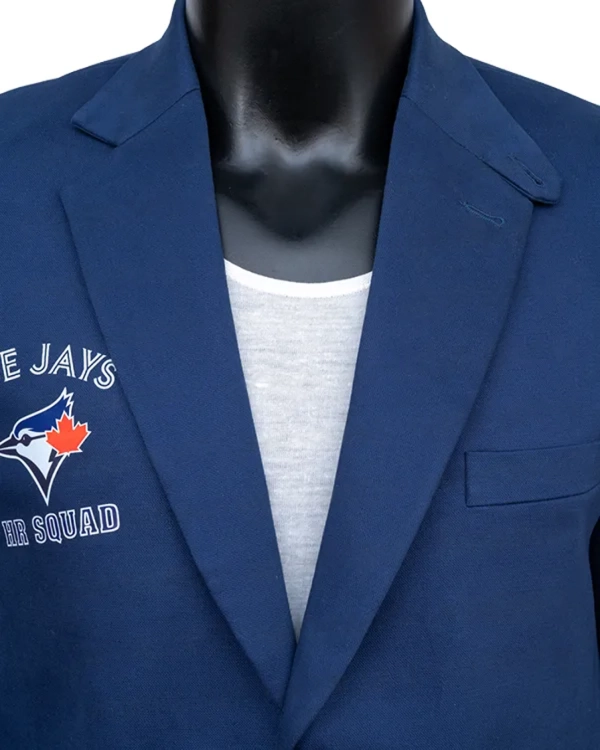 The suiting fabric used to make this jacket is robust and feels smooth. Its soft viscose lining on the inside keeps you cozy and warm. The front has a smart finish thanks to its tidy button-style closure. It has a lapel collar that gives the athletic style a refined touch. The full-length sleeves fit your wrists well because of their round cuffs. One chest pocket, two waist pockets, and two interior pockets make up the total of five pockets. These are excellent for on-the-go carrying of small items, such as your wallet or phone. For anyone looking for something fashionable, practical, and team-oriented, the Home Run Blue Jays Jacket is a fantastic option. It goes well with many different outfits and is simple to pair with jeans or pants.