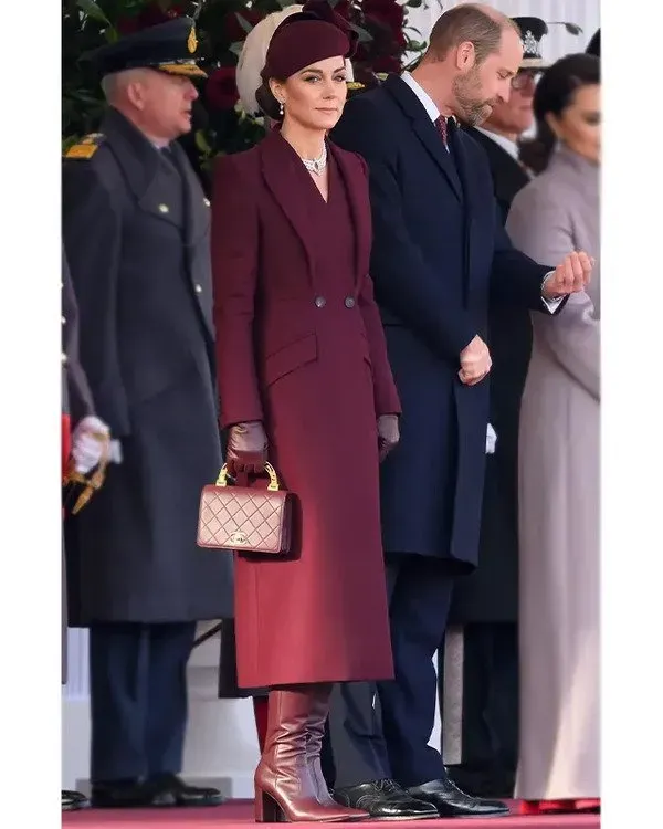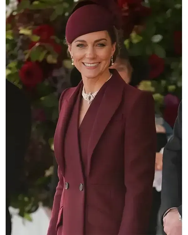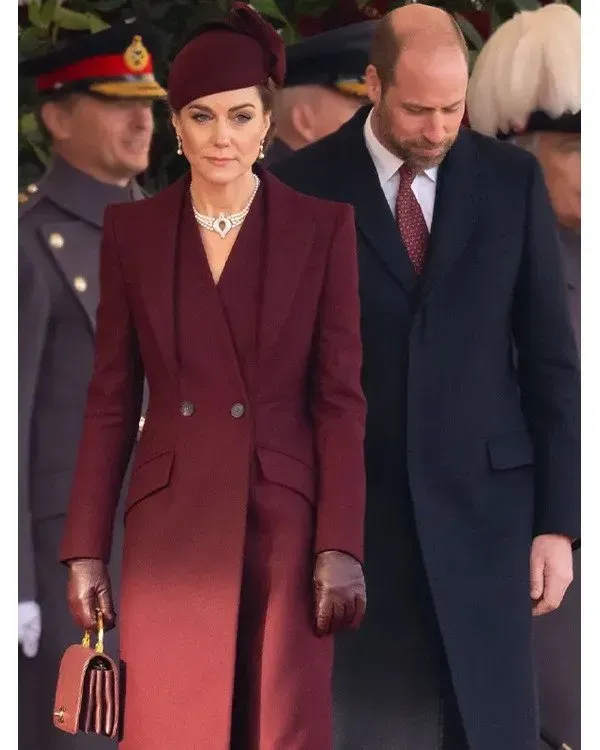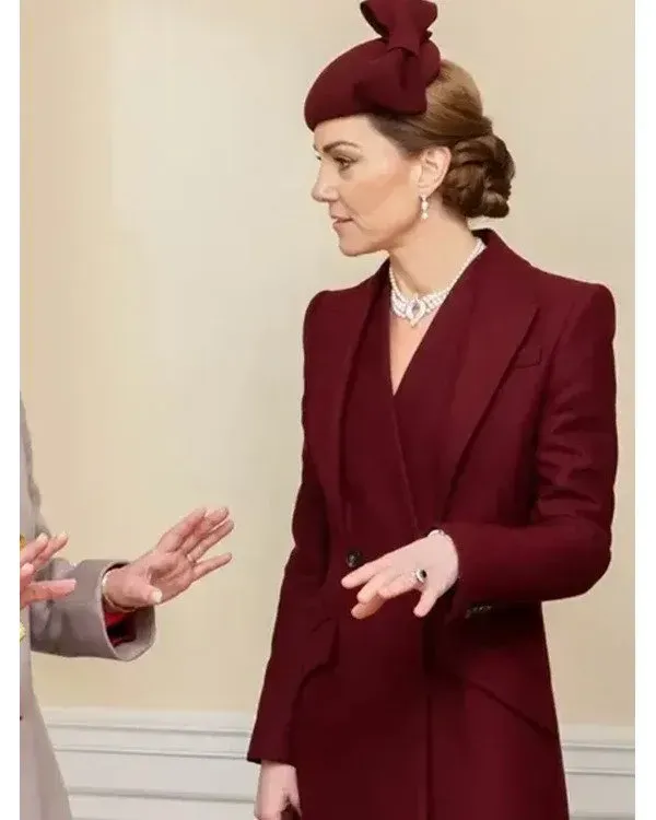Princess Of Wales Kate Middleton Long Burgundy Coat