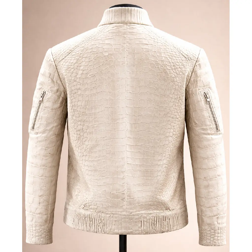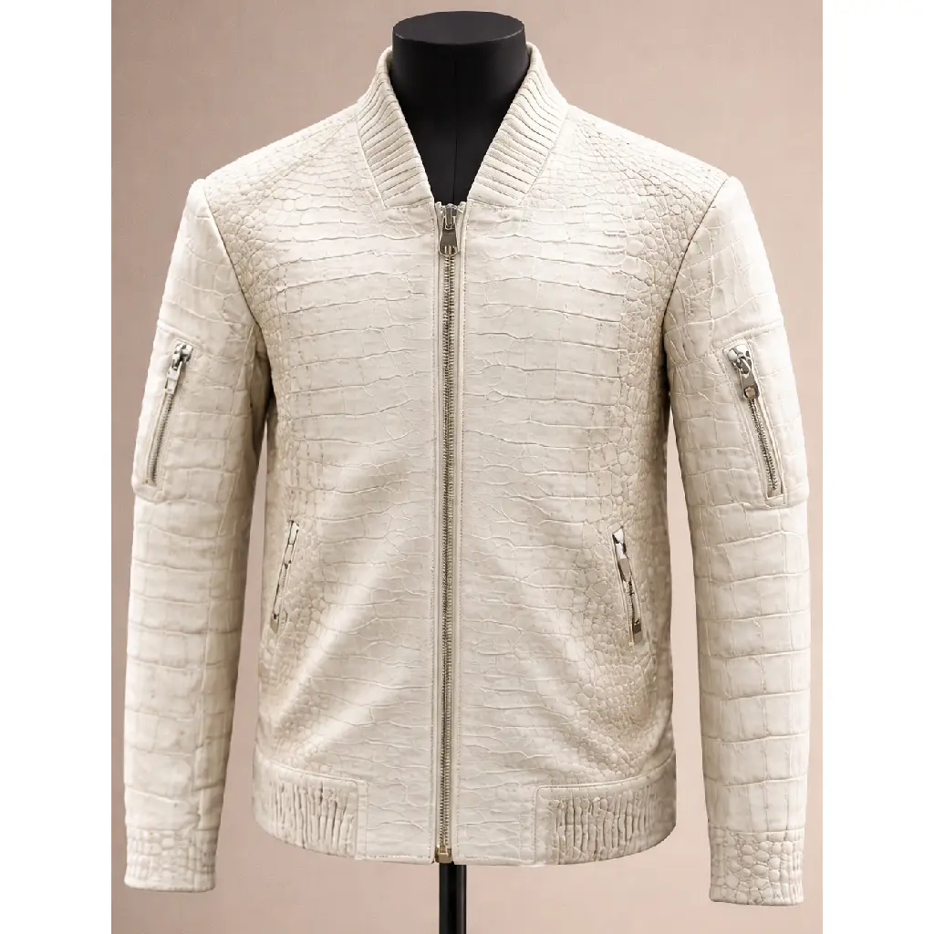 This off-white jacket is intended for those who want to look fashionable and sophisticated. The Voice 2026 Crocodile Leather Jacket has a smooth, fashionable feel because it is made of premium imitation leather. While maintaining the simplicity of the design, the ribbed knitted collar adds a contemporary touch. It has long sleeves with elasticated hem and cuffs for a snug and comfortable fit. It is easy to wear and ideal for daily use thanks to the front zipper closure. You can carry small items in its two side pockets and one sleeve pocket with a zipper. Because of its off-white hue, it is distinctive and goes well with a variety of ensembles. This jacket offers comfort and style in one piece, making it a great option for travel, outings, or casual wear.