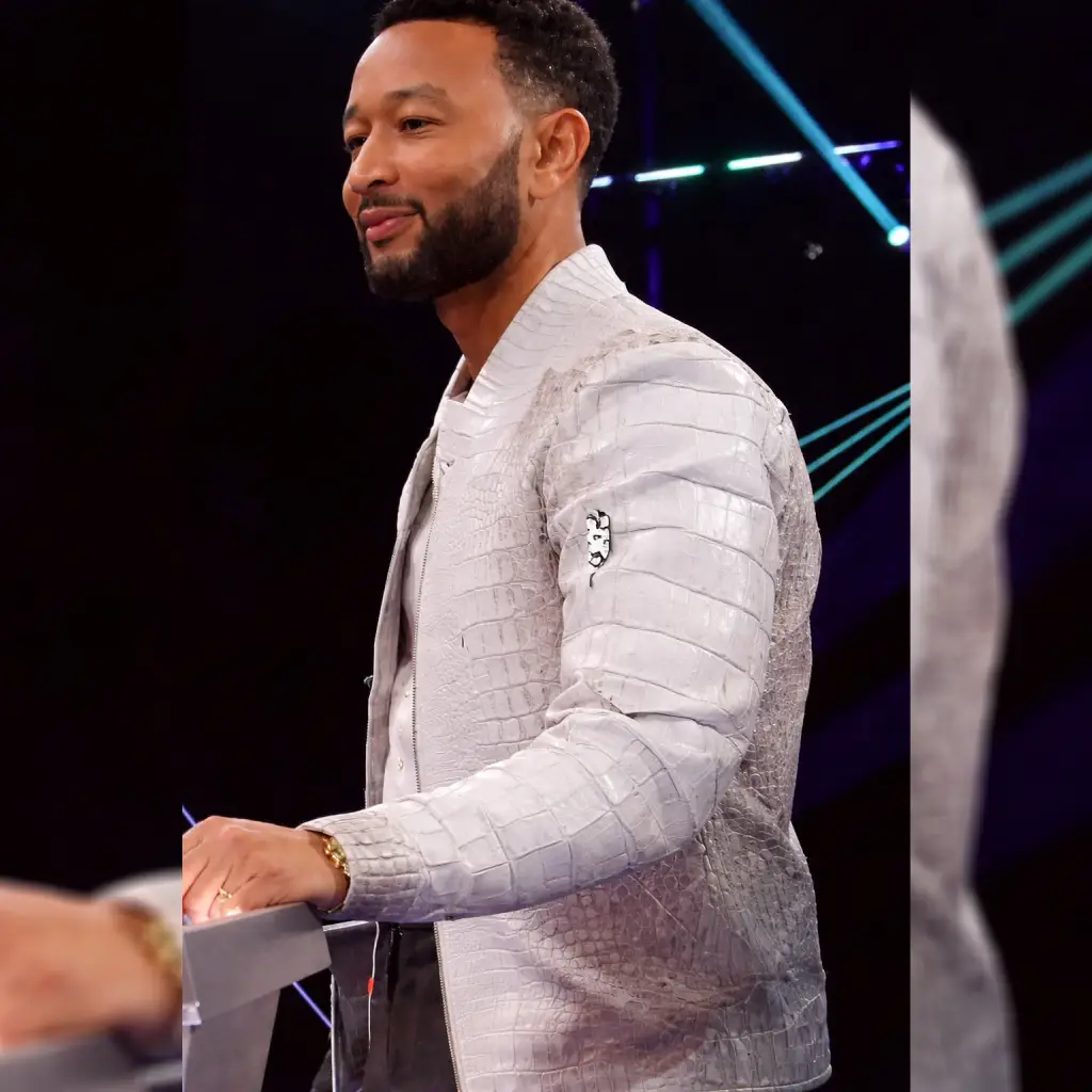 John Legend is renowned for his elegant sense of style, serene demeanor, and smooth voice. Millions of people have been won over by his music and endearing demeanor. The Voice 2026 John Legend Crocodile Leather Jacket. Fans all over the world admire not only his talent but also his sense of style. He frequently dons simple, tidy, and contemporary ensembles that are easy to emulate for daily wear. His aesthetic demonstrates how to look sophisticated without exerting too much effort. His clothing appeals to a lot of people because it is both comfortable and fashionable.