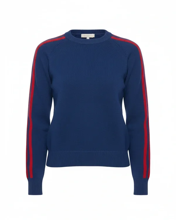 Made from knit fabric, it offers the perfect mid weight texture for year-round wear and a soft, cozy feel. Never too tight or too loose, the classic crew neckline and athletic-inspired silhouette keep a relaxed yet attractive look. It stands out thanks to the eye-catching red stripes that run the length of the sleeves, which create a vintage track-style look that contrasts exquisitely with the deep navy blue base. This 2025 Wants This Bell Red Sweater offers a versatile, carefree elegance that echoes Kristen Bell’s effortless charm on screen. It looks great with jeans, joggers or casual skirts. It is the ideal piece to add flair to your off-duty ensemble, whether you are going out, layering, or just relaxing.