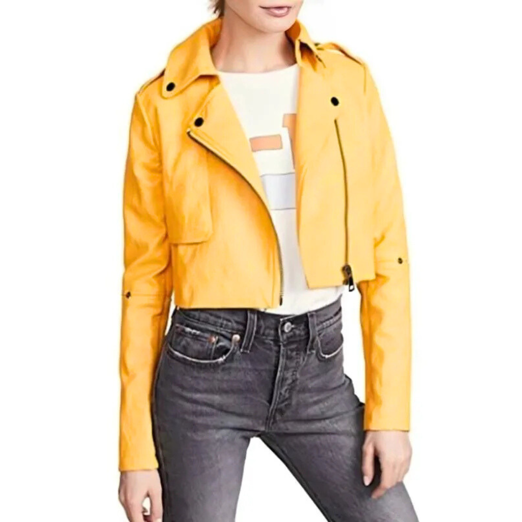 Made from authentic leather, the Waverly Place Janice LeAnn Yellow Leather Jacket is stylish, resilient, and elegant. It features a traditional lapel collar that enhances its modern aesthetic and a front zippered closure for a comfortable fit. The long sleeves, designed with zipper cuffs, provide both comfort and a hint of edginess. The viscose lining guarantees breathability and softness, making it ideal for all-day wear. This vibrant yellow hue makes it a genuine statement piece, perfect for parties, casual get-togethers, or any occasion where you want to stand out. To achieve a fashionable and confident appearance reminiscent of Janice LeAnn’s signature style, pair it with jeans or a dress.